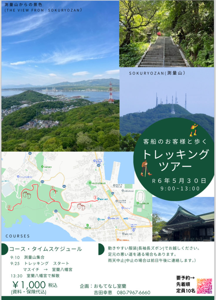 ⚫︎(一般プラン)5/30(木) 9:10測量山駐車場集合、13:30室蘭八幡宮解散
