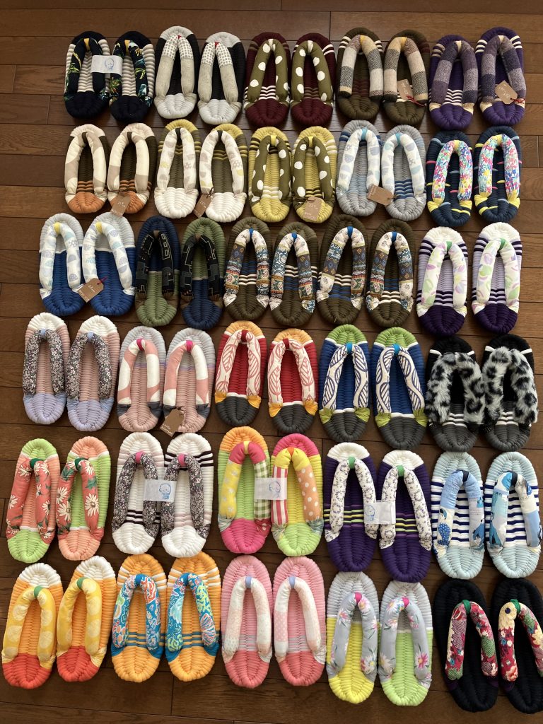 Nuno zouri (cloth sandals) are handcrafted one by one with care, following a traditional Japanese method. They are made from recycled materials like old fabric or T-shirts, and each pair has its own unique texture and color. Because they are handmade, they are soft, comfortable, and gentle on the feet. These sandals are also eco-friendly, making them an attractive choice for those who value sustainability.